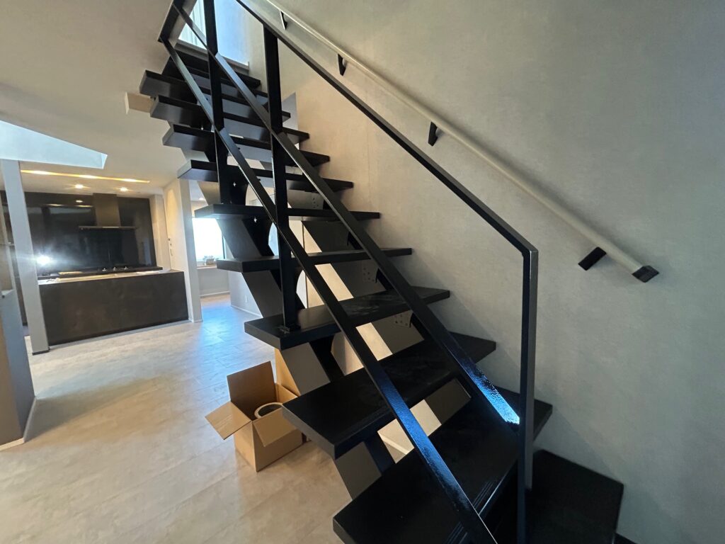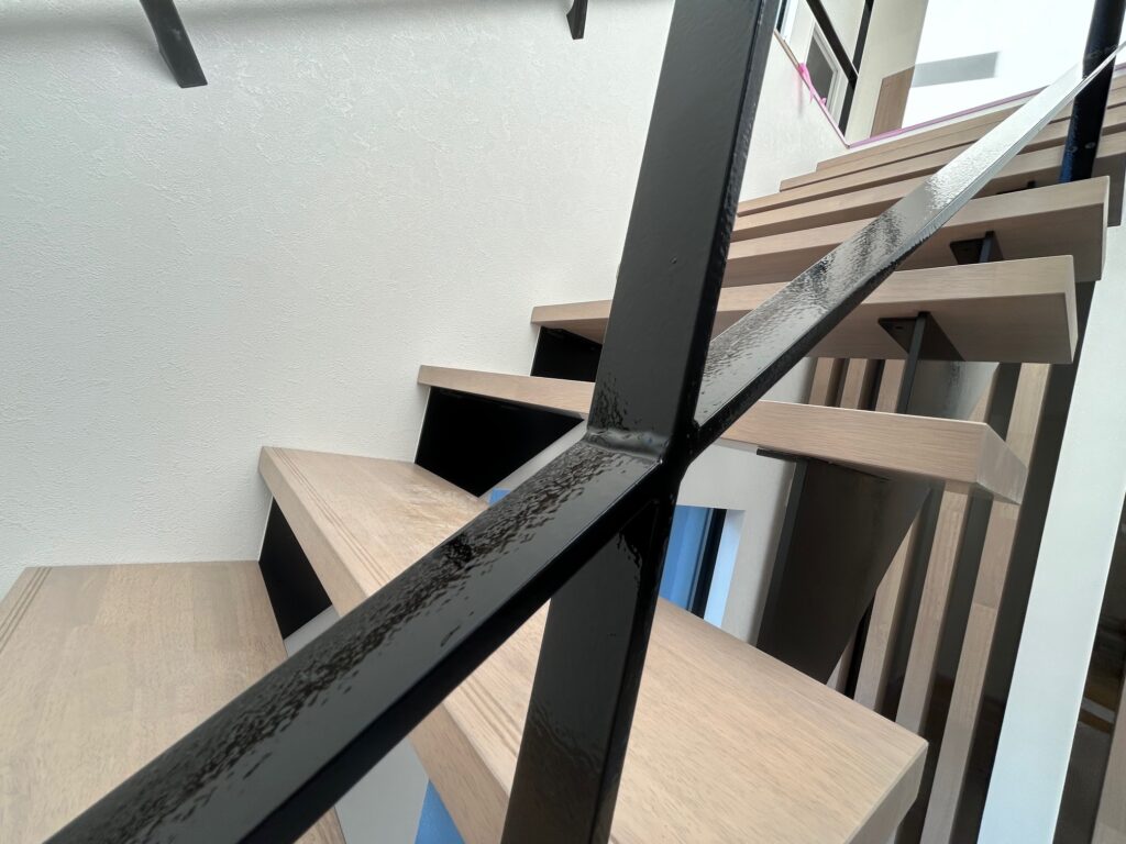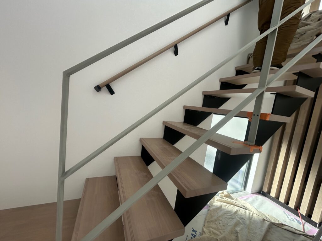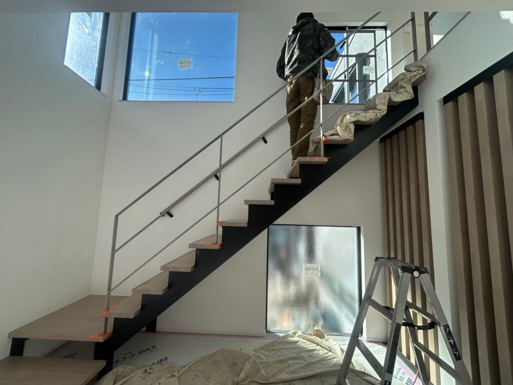 新築物件の室内階段の手摺とササラ桁塗装を行いました。