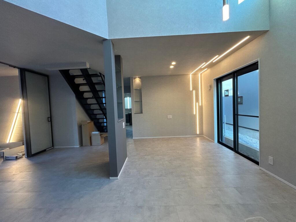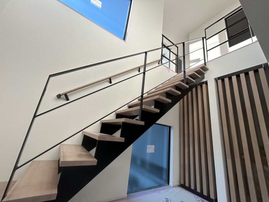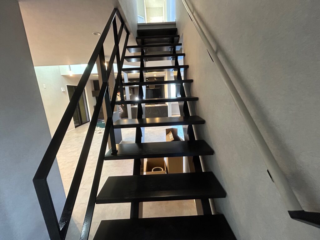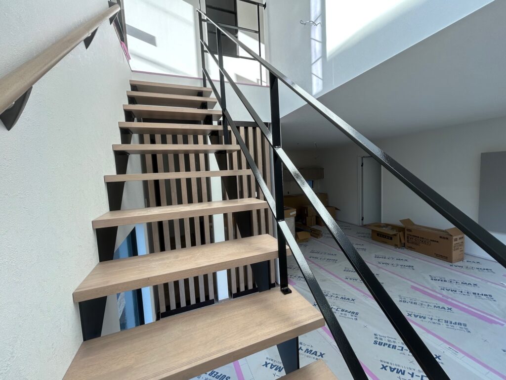 新築物件の室内階段の手摺とササラ桁塗装を行いました。
