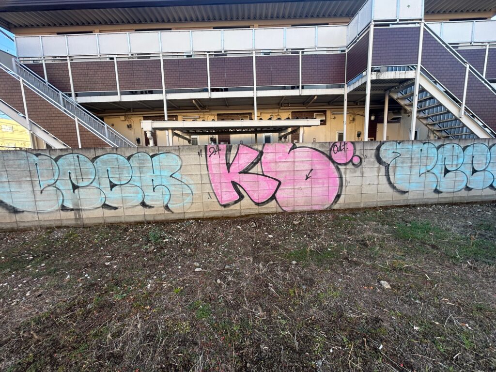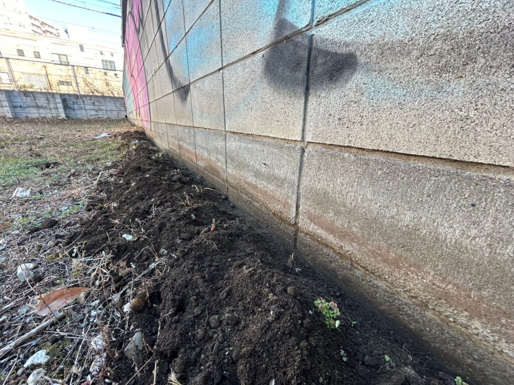 現在空き地状態な事もあり落書きをされてしまったようですが、新規で住宅が建つ予定なので専用塗料で塗装しました。
