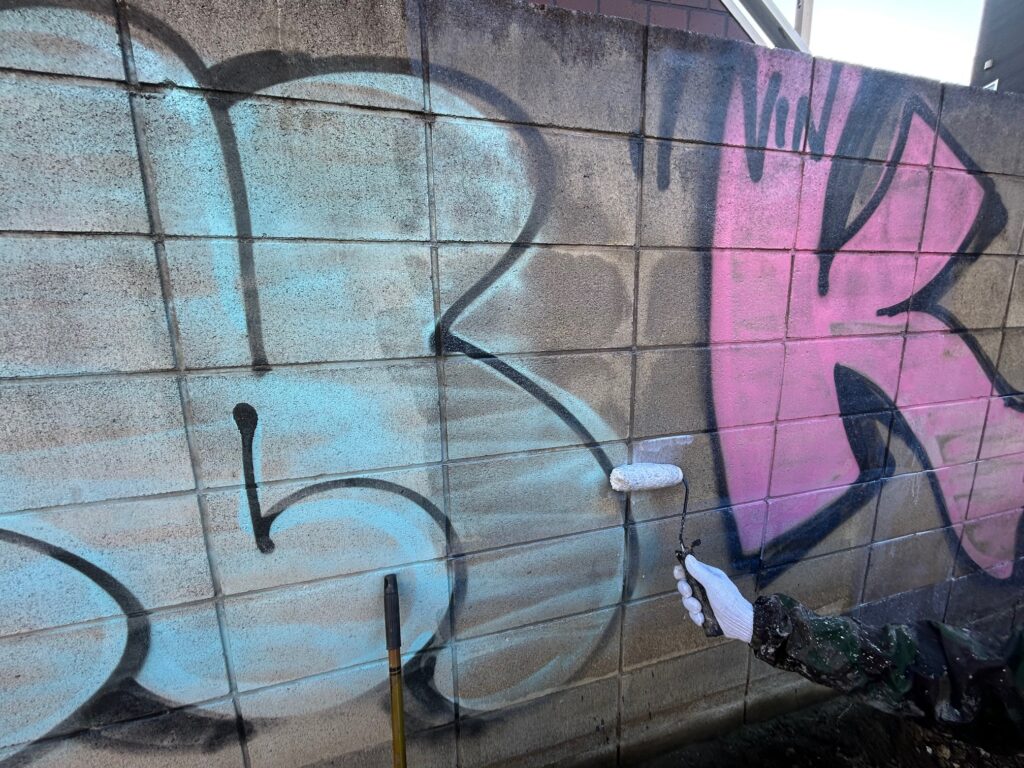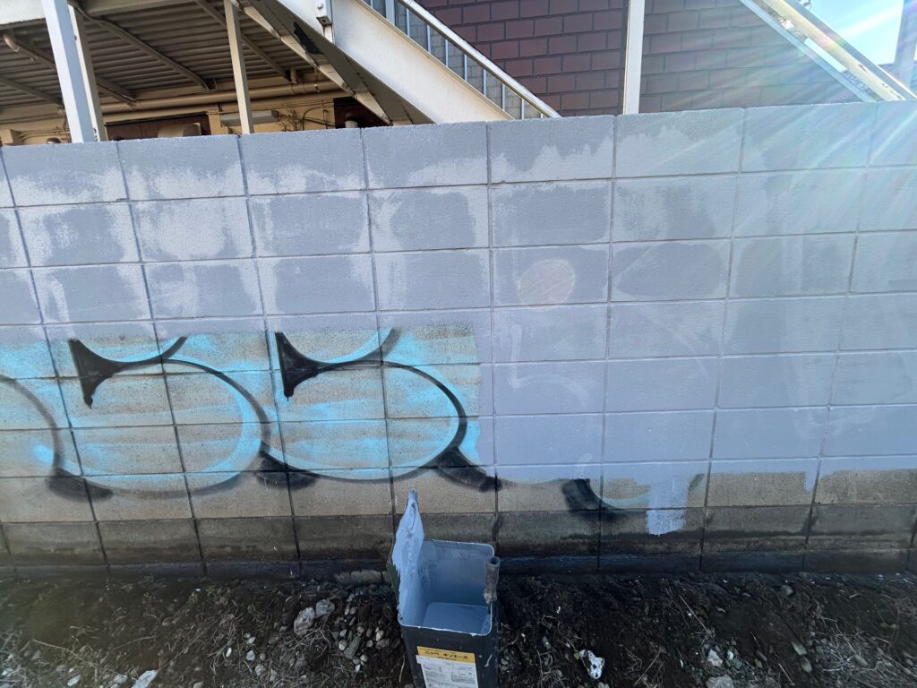 東京都三鷹市で落書きがされてしまったブロック塀塗装を行いました。