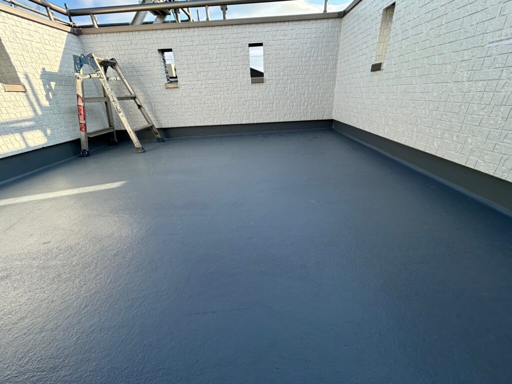 外壁塗装の他にバルコニー床防水を行ないましたが、既存床にコンパネを敷きガラスファイバー処理後にトップコート塗布で仕上げました。